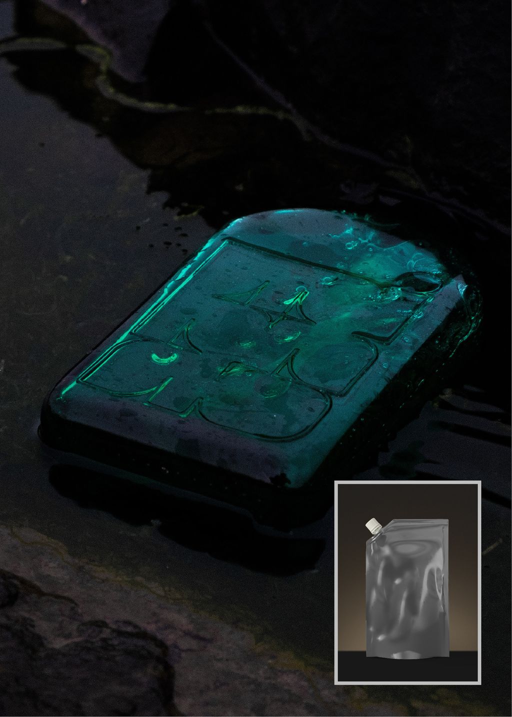 選用玻璃為包裝材質,委託春池玻璃以半手工吹製製作,瓶身上的氣泡、玻璃的流動、字體的漸強漸弱,那些別人眼中的瑕疵,詮釋了我們對生活的想像,不求完美無瑕,卻要活出屬於自己的痕跡。玻璃是一種可以百分之百完全回收的材質,除了減少資源上的浪費,我們也著重在瓶身設計,希望增強重複利用的驅力,無論是再填裝、花器擺飾或任何形式的保留下瓶身,都是一種友善。